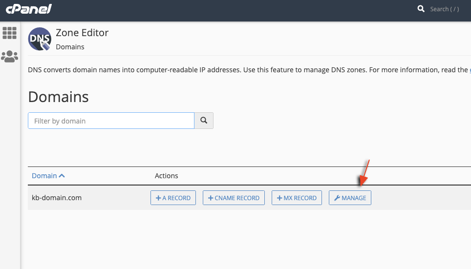 Then click on Manage next to the domain you want to change your DNS for: